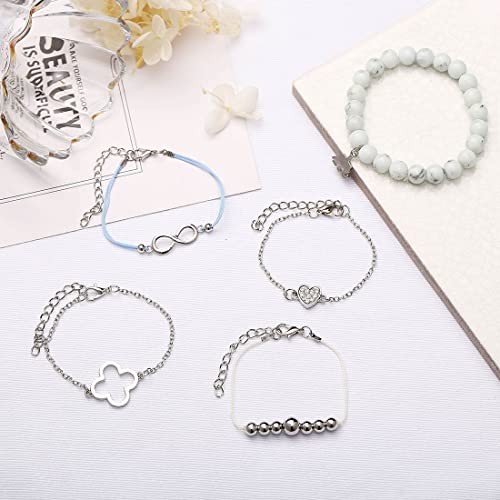 Prosy Multilayer Lucky 8 Bracciali Set Argento Bead Fantasy Elefante Cuore Marmo Accessori per le mani Gioielli regolabili per donne e ragazze