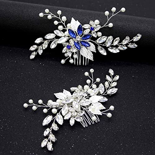 Prosy Pettine per capelli da sposa con cristalli e perle argentate, accessori per capelli da sposa per donne e ragazze (cristallo argento-blu)