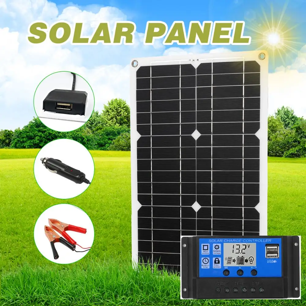 180W 12V Protable Solar Panel Kit Port with 20A LCD Display Solar Charge Controller Cable Kits Solar Power Grid Monocrystalline