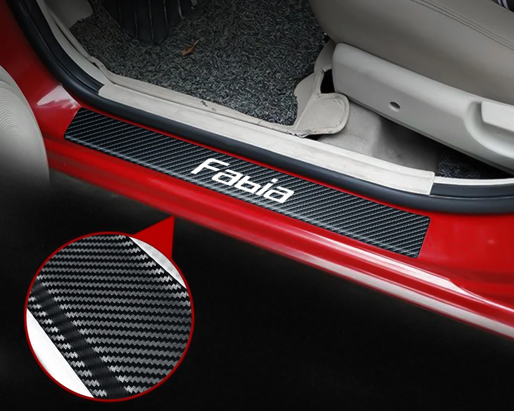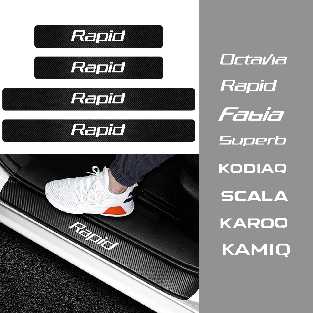 4PCS Car Door Sill Protector Carbon Fiber Anti Scratch Stickers for Skoda Cctavia Rapid Fabia Superb Kodiaq Scala Karop Kamiq