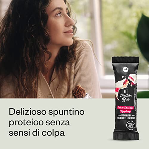 Nu3 Fit Protein Bar - Barrette proteiche al gusto lampone al cioccolato bianco - Confezione 12x 55g - Barrette proteica senza olio di palma - Pochi zuccheri - Snack low carb tra un pasto e l'altro