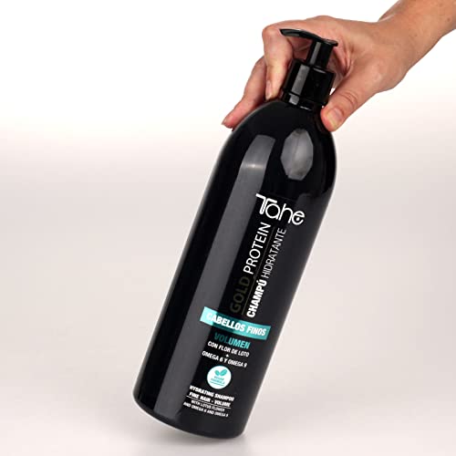 Tahe Gold Protein Shampoo Idratante Capelli Fini Volume con Fiore di Loto e Omega 6 e 9 (1000 ml)