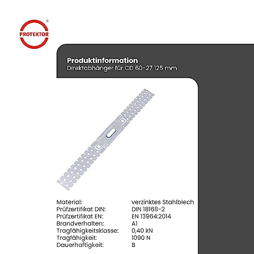 PROTEKTOR 100 pezzi, 125 mm Gancio diretto Gancio a soffitto piatto per profilo CD 60/27 Accessori Profili per soffitti in cartongesso, qualità Made in Germany