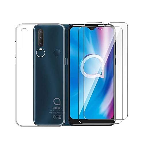QFSM 1 PCS Protettiva Cover per Alcatel 1S 2020 (6.22"), Silicone TPU Case Morbido Custodia Trasparente Shell + 2 PCS Vetro Temperato Pellicola Vetro Glass Italia -Clear