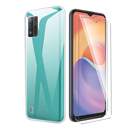 QFSM Protettiva Cover per ZTE Blade A52 Lite (6.52") Silicone TPU Custodia Trasparente Case Shell + 2 PCS Vetro Temperato Pellicola Vetro Glass Film - Trasparente