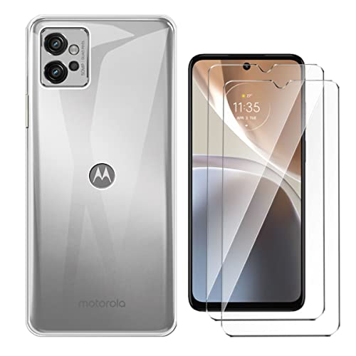 QFSM Protettiva Cover per Motorola Moto G32 (6.5") Silicone TPU Custodia Trasparente Case Shell + 2 PCS Vetro Temperato Pellicola Vetro Glass Film - Trasparente