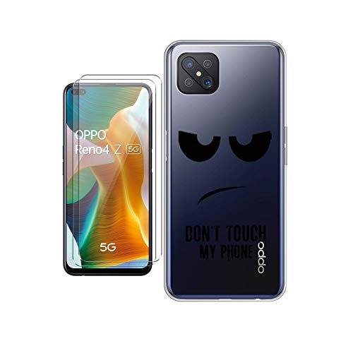 QFSM Protettiva Cover per Oppo Reno 4Z 5G Smartphone TPU Custodia Trasparente Case Shell + 2 PCS Vetro Temperato Pellicola Vetro Glass Film (6.67") - Occhio