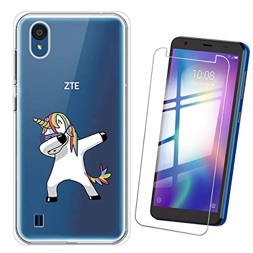 QFSM Skin Protettiva Case Cover + Vetro Temperato per ZTE Blade A5 2019 (5.45") TPU Custodia Trasparente Shell, 9H durezza Durevole Temperato Pellicola Vetro Glass Film Protezione-WM164