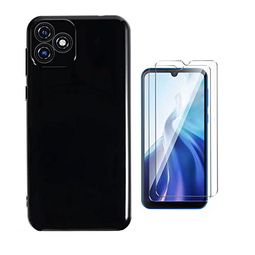 QFSM Protettiva Cover + Vetro Temperato per Oscal C20 / Oscal C20 PRO (6.1"), Silicone TPU Case Morbido Custodia Black Shell e 9H durezza Vetro Temperato Pellicola Vetro Glass - Black