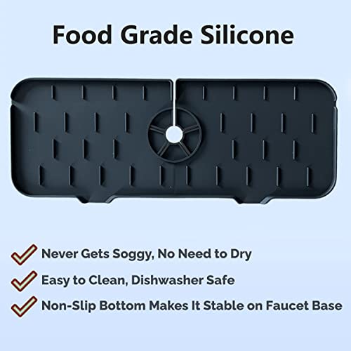 Multiuso - Non è solo un tappetino per rubinetti, potete anche mettere lo spazzolino da denti, la tazza, il disinfettante per le mani e il sapone per i piatti su questo cuscinetto di scarico in silicone per rubinetti. Si adatta facilmente alla base del lavello della cucina, del bagno, della casa colonica, del camper o della toilette per mantenere pulito e asciutto il lavello.