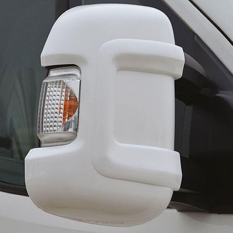 PROTEZIONI PER SPECCHIETTI ESTERNI HTD Set Mirror Cover Colore Bianco per Fiat Ducato > 2006, Peugeot Boxer, Citroen Jumper 2006> Gran valore aggiunto, ben otto volte più economico di un nuovo specchietto. Permette di recuperare gli specchietti esterni danneggiati, migliorandone l'estetica. Facile da montare: si fissa sullo specchietto originale senza utilizzare alcun utensile, ma semplicemente inserendo la banda adesiva fornita di serie. Banda adesiva permanente a doppia faccia permette un fissaggio al 100% contro i furti Conforme alle norme di sicurezza standard dei veicoli Testato ed approvato: eccellente resistenza contro l'impatto di ostacoli, sia fissi che mobili, fino ad un massimo di 90 Km/h. Resistente all'acqua. Ogni set è composto da 2 pezzi Colore bianco laccato