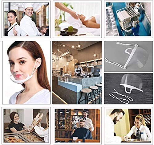 Protezione della bocca del viso, visiera in plastica trasparente con fascia elastica regolabile, visiera protettiva anti-appannamento e anti schizzi, per hotel, cucina, ristorante (4)