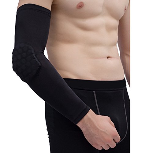UEB Protezione per Braccio Basket a Nido d'Ape Gomitiere a Manica Lunga Resistente agli Urti per Basket Calcio Pallavolo Baseball Ciclismo (Nero, M)