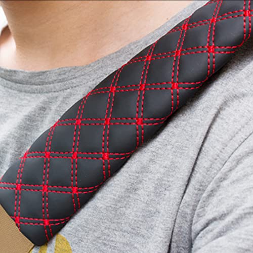 Protezione per Cintura di Sicurezza, 2 Pezzi Imbottitura per Cintura di Sicurezza, Cuscino Cintura Sicurezza Ideale Come Cuscino Supporto per la Testa per Adulti e Bambini (Nero rossastro)