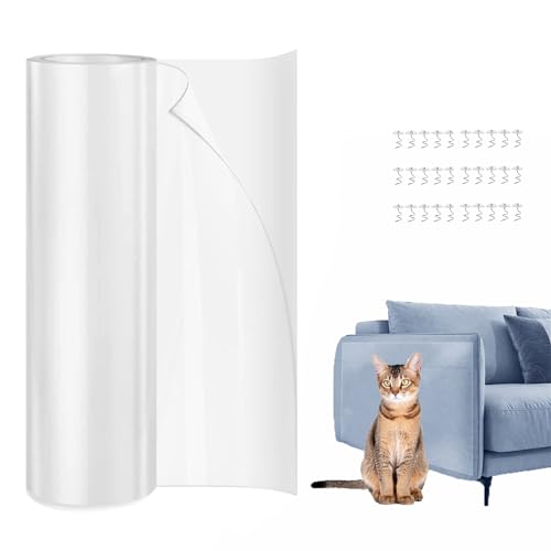 Protezione Divano Graffi Gatto(30cmx5m),Viene fornito con 30 chiodi,Protezione Graffi Gatto,Proteggi Divano Gatti Graffi,Protezione antigraffio per gatti, per Divano Sedie Pareti e Mobili.