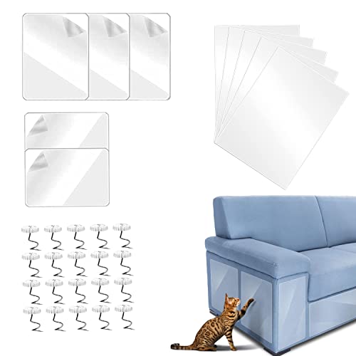 5 Pcs protezione divano graffi gatto, Protezioni Anti Graffio Mobili, Autoadesive Trasparente PVC Anti-Graffio Protector, 20 Viti AntiGraffio Protezioni Tappetino, Per mobili porta divano(30 * 40cm)