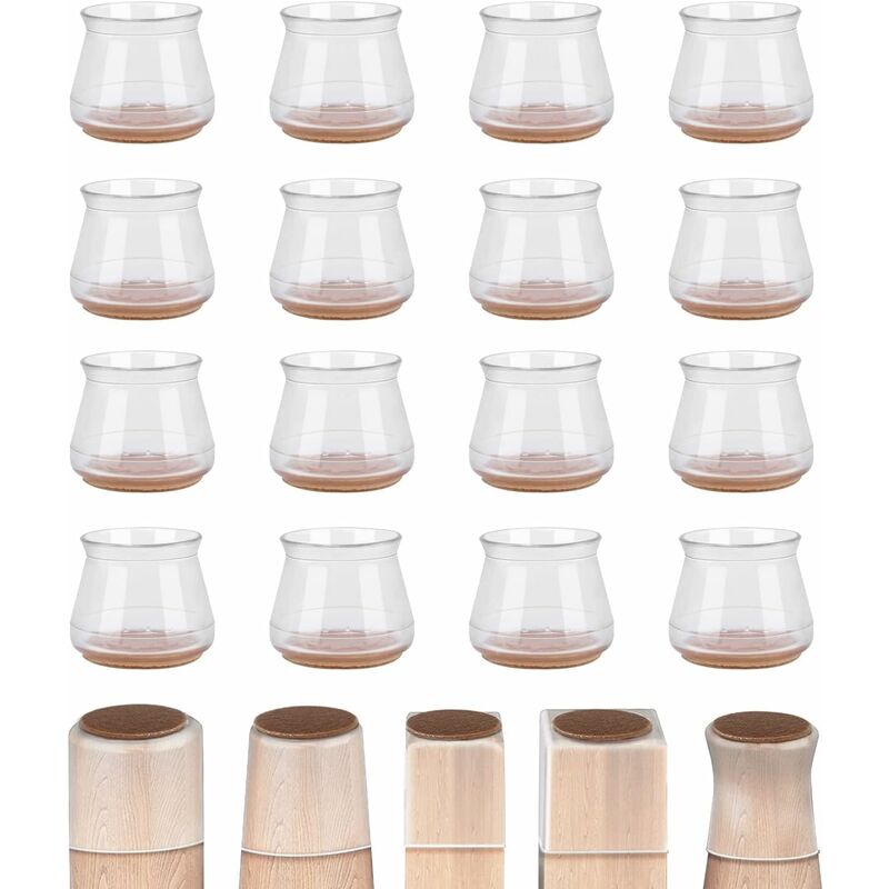 Protezioni migliorate per le gambe della sedia: queste imbottiture per mobili eliminano i graffi sul pavimento e riducono il rumore dello scivolamento della sedia. Offri tranquillità e protezione duratura ai tuoi pavimenti in legno. Le sedie sui pavimenti piastrellati non vibrano più. Feltri che non cadono mai: questi cuscinetti per le gambe delle sedie per pavimenti in legno sono un grande miglioramento rispetto ai feltrini incollati che tendono a scivolare e a macchiare i pavimenti. I feltrini aggiornati sono realizzati in silicone e non si attaccano solo alla pelle. come molti altri coprigambe per mobili. Quindi non preoccuparti mai che cadano. Alta trasparenza: realizzata in silicone trasparente di alta qualità, la protezione per le gambe della sedia è quasi invisibile e mette in mostra il legno sottostante. Permette alle gambe della tua sedia di mostrare il loro colore originale, facilmente trascurato dai coprigambe della sedia. Allungamento libero: il coprigambe della sedia in