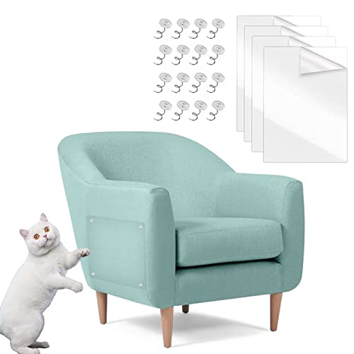 Protezione Graffi Gatto,4 Pezzi Proteggi Divano Gatti Graffi, Autoadesive Trasparente Gatti AntiGraffio Protector,con 16 Viti AntiGraffio Protezioni Tappetino per Divano Sedie Porta Pareti e Mobili