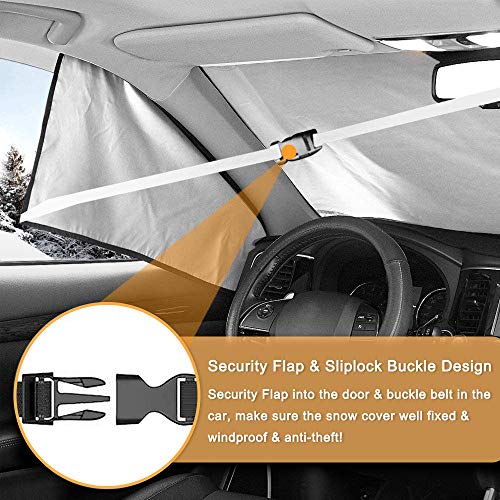 ❄️【Usato tutto l'anno】: Coperchio parabrezza professionale, adatto per tutte le stagioni, resistente a pioggia, gelo, neve, raggi UV e polvere. Evita il gelo, la neve o il ghiaccio accumulati sul parabrezza in inverno, proteggere dai raggi UV in estate, bloccare la polvere in primavera e tenere lontano dalle foglie cadute in autunno.