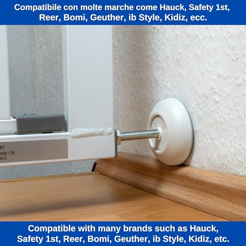 ✅ [ORA ANCHE SICURO - CON TAPPI DI SILICONE PREMIUM] Vogliamo rendere il vostro cancelletto per bambini ancora più sicuro - la nostra nuova versione dei nostri tamponi da parete per cancelli per scale è ora dotata di tamponi in silicone spessi.