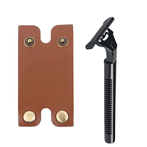 通用 Protezione per Lama di Rasoio di Sicurezza | Protezione per Rasoio in Pelle PU | Protezione per la Testa del Rasoio, Design Sicuro con Chiusura a Bottone, Pelle selezionata Durevole