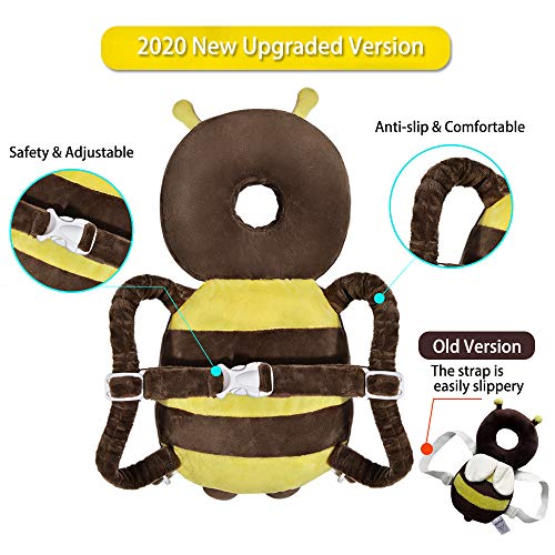 Protegge testa e schiena: la protezione per la testa del bambino aiuta a proteggere la testa e la schiena del bambino quando strisciano e camminano. Ridurre le lesioni alla testa e alla schiena. Il simpatico design delle api è profondamente amato dai bambini