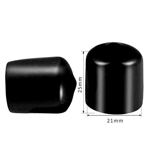 100 protezioni per filettature a vite, diametro interno 21 mm, in gomma PVC, tappo rotondo in plastica, colore nero