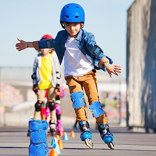 Protezioni Pattini Bambino 7-12Anni Sonwaha 6Pezzi Protezioni Skateboard Bambini Blu Ginocchiere Bambini per Skate,Bicicletta,Pattinaggio,Monopattino e Altri Sport Estermi