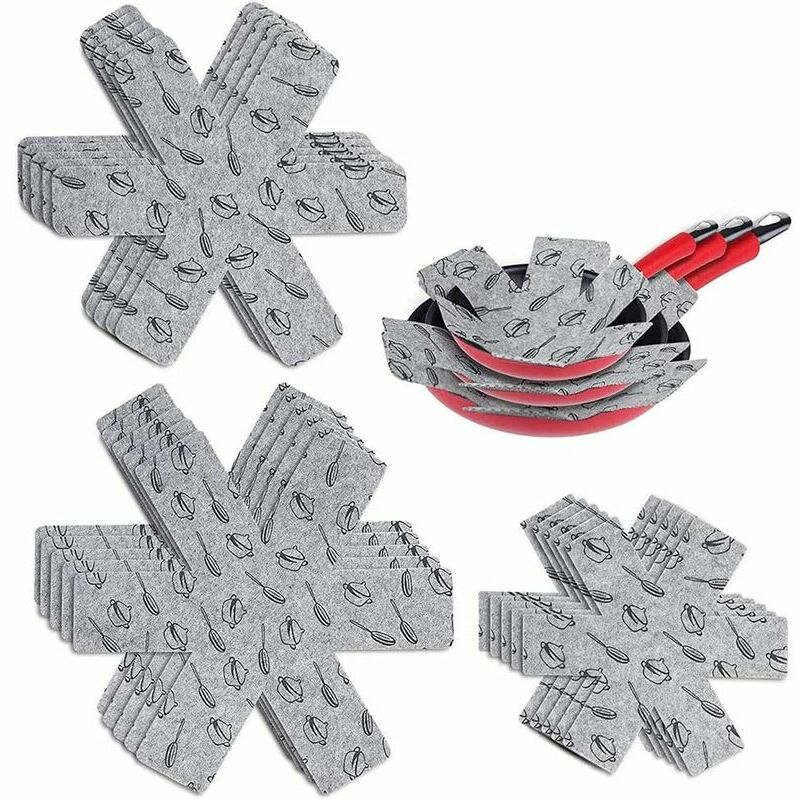 CON TRE MISURE - 15 protezioni in feltro di cui 3 diverse misure (38cm, 35cm, 26cm), 5 pezzi per ogni misura. Taglia il materiale e fai da te le dimensioni in base alle tue esigenze 【LAVABILE IN LAVATRICE】 Se il tuo nuovo salvapentola si sporca, nessun problema: puoi semplicemente e facilmente metterlo in lavatrice per pulirlo 【MATERIALI DI ALTA QUALITÀ】 Questi cuscinetti protettivi sono realizzati in feltro di alta qualità. Il materiale ha un'elevata capacità di assorbimento, può impedire la riproduzione dei batteri, ha una consistenza antiscivolo, può essere stabile durante l'impilamento o 【FACILE DA USARE】 Posizionare il cuscinetto protettivo tra pentola e padella per evitare graffi e prolungare la vita del fornello. Questi cuscinetti protettivi possono essere utilizzati anche tra vetreria e prodotti in ceramica per evitare la frammentazione del prodotto 【AMPIE APPLICAZIONI】 Ideale per l'uso con pentole, gres, pentole, ceramica, padelle per utensili, vassoi e vetro per evitare urti