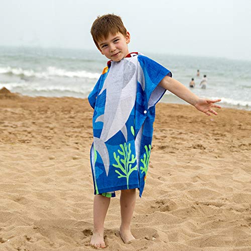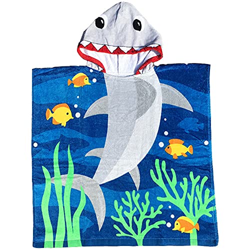 Proumhang Bambini Telo Mare Con Cappuccio,100% Cotone,Telo da Bagno Poncho Asciugamano Cartone Animato Telo Mare Asciugatura Rapida per Ragazze Ragazzi Bambini,2-10 anni Squalo 60CM