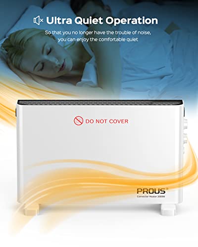 PROUS Stufetta Elettrica Basso Consumo con Ventilatore Turbo, 2000W Termosifone, Riscaldamento Rapido Risparmio Energetico, Protezione da Surriscaldamento, per Ambienti 20-30m²
