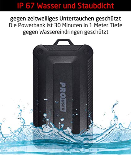 ProUser Power bank 10000 mAh Ricarica rapida 3.0, Consegna di potenza 3.0 Li-Ion Nero Carica e scarica simultanei, Outd