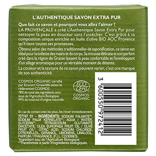 La Provencale ha creato l' autentico sapone extra-pur per pulire la pelle in morbidezza senza l' assécher. È grazie alla sua composizione unica arricchita con olio d' oliva biologico Doc Provenza che tiene le promesse.