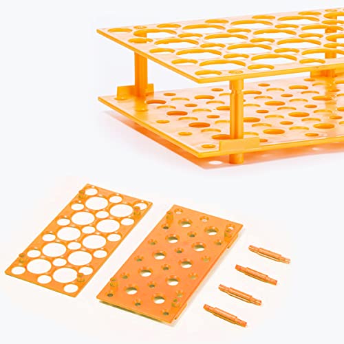 Il diametro del tubo è di circa 1.5 cm e l'altezza totale è di circa 10.6 cm dopo l'aggiunta della copertura.Il numero di piccoli fori sul rack del tubo è 18 e il diametro del foro è 17MM, che è adatto per i tubi della centrifuga da 10ml e 15ml. Ci sono 10 grandi fori con un diametro di 30MM, che sono adatti per tubo centrifugo 50ml.