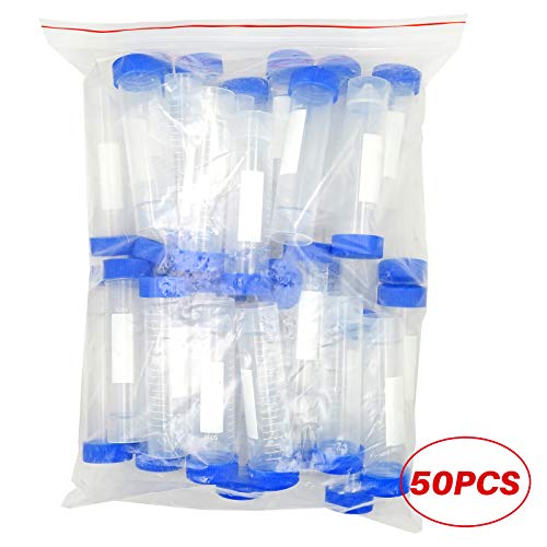 Provette Plastica 50ml, Provette per Centrifuga Fondo Piatto, Tappo Blu Senza Perdite Trasparente Provette da Laboratorio - 50 Pezzi