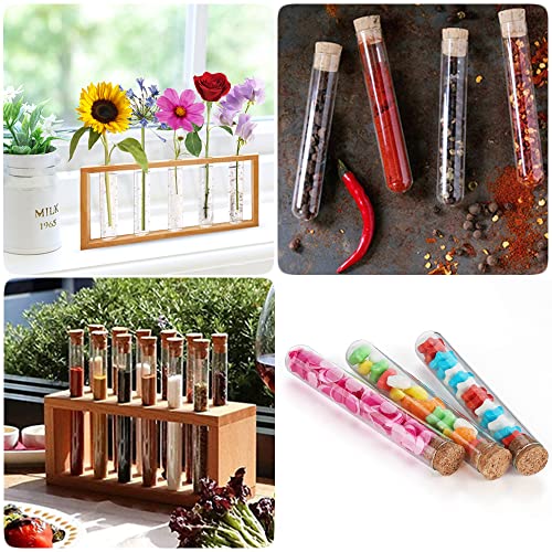 Provette Plastica con Tappo Sughero 20pcs Provette di Plastica Trasparente 20ml Provette Portaconfetti Riutilizzabili Provette da Laboratorio per Decorazione Fiori Semi Caramelle Spezie 150 * 16mm