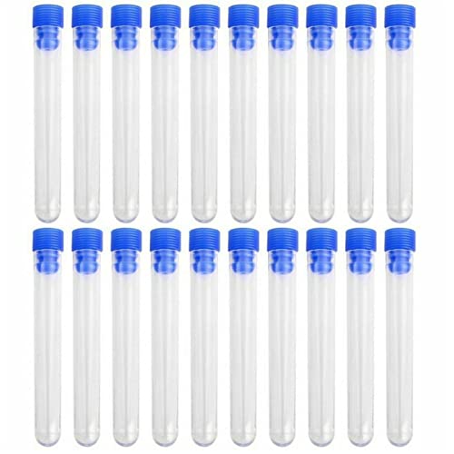 20 provette in plastica trasparente con tappi a spinta, 16 x 100 mm, tubo di plastica con coperchio, per gioielli da laboratorio, perline in polvere, spezie, caramelle liquide