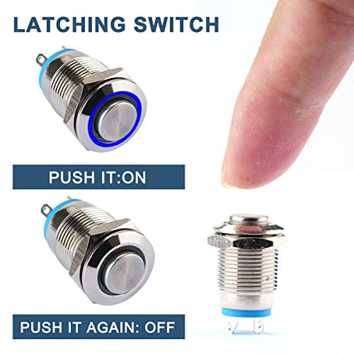 PROVO 8 Pcs Interruttore a Pulsante Autobloccante con LED anello in gomma impermeabile 12V 12mm Metallo Latching Interruttore a Pulsante in Acciaio Inossidabile per 4 Pin Campanello Barca Auto Argento