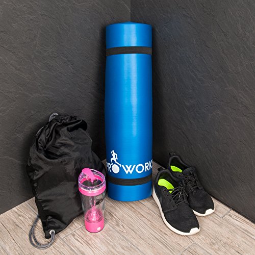Proworks Materassino Yoga Grande, Imbottito, con Maniglia per Il Trasporto per Pilates/Esercizi/Ginnastica - Blu