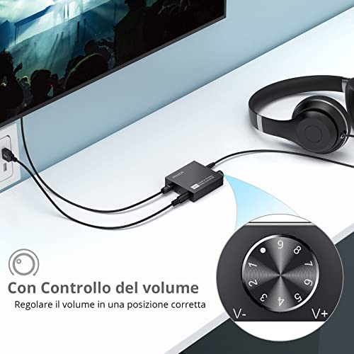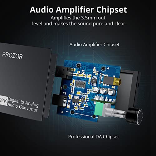 PROZOR Adattatore Ottico Jack 3.5 Volume Regolabile 192KHz DAC con Chip Amplificatore Audio Convertitore Audio Digitale Analogico Ingresso Toslink Uscita Jack 3.5mm per TV DVD Console di Videogioco