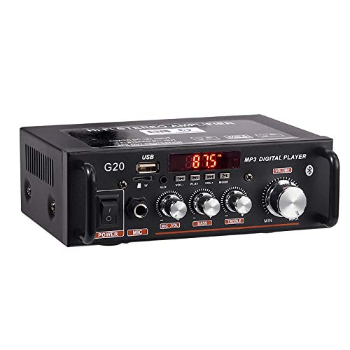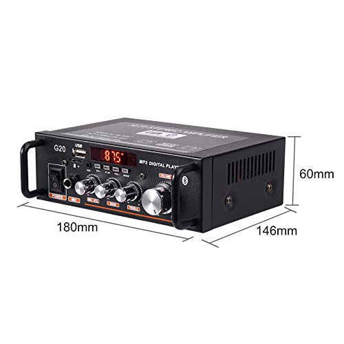 PROZOR G20 - Amplificatore stereo HiFi digitale, 15 W + 15 W, con interfaccia USB/SD, audio FM e microfono con telecomando a infrarossi per smartphone, tablet ecc.