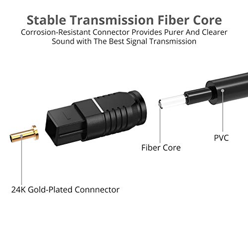 【Compatibilità Formati Audio】Questo Cavo Ottico Può Essere Utilizzato per Audio Surround Multicanale, Audio PCM non Compresso e Sistemi Audio Surround Compressi da 5.1 a 7.1, che Supportano Dolby Digital +, DTS-HD ad Alta Risoluzione e LPCM.