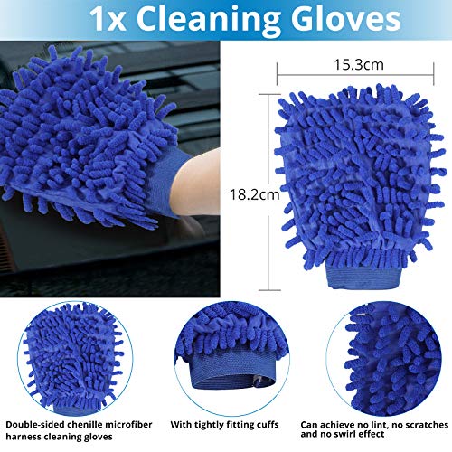 【Guanto per Autolavaggio】 Guanto per Lavaggio in Microfibra a Doppia Faccia in Ciniglia con Polsino Aderente che Offre una Finitura Priva di Lanugine, Graffi e Vortici. Lavabile in Lavatrice in Acqua Fredda.