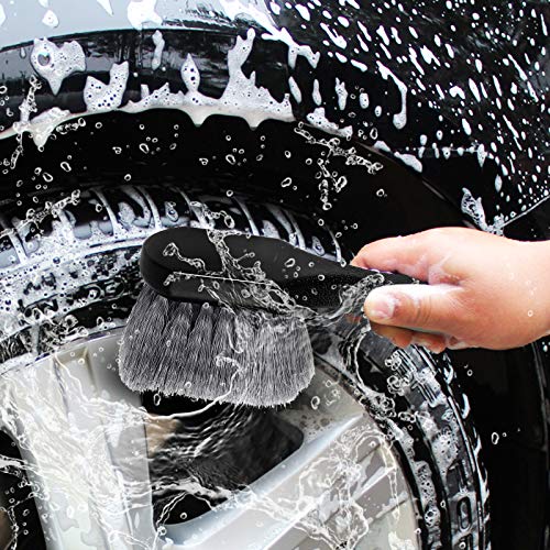 【Spazzola per Pneumatici a Manico Corto】L'estremità in Setola Fornisce una Pulizia Sicura e Delicata e la Pesante Impugnatura Antiscivolo Offre una Presa Perfetta, Ideale per Strofinare Pneumatici, Telaio, Ruote, Pulizia dell'auto, ecc.