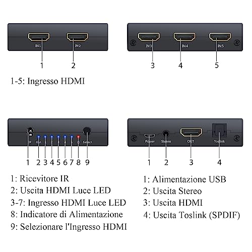 5x1 HDMI Switch con Audio Extractor, Non è solo uno Switch HDMI 5x1, ma anche un Estrattore Audio HDMI con tre Modalità di Uscita Audio.
