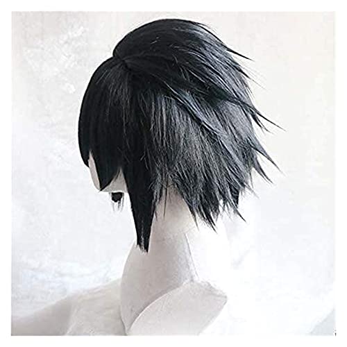PRTOYO Black Short Fluffy Layeted Capelli Sintetici Parrucche di Capelli Uchiha Sasuke Parrucca Cosplay Resistenza al Calore Fibra + Tappo della Parrucca