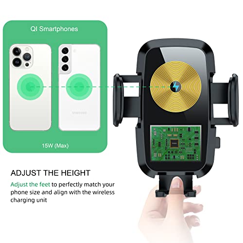 L'altezza di 15mm è regolabile per adattarsi perfettamente alle dimensioni del telefono e allineare l'unità di ricarica wireless. Prima dell'uso, collegare il caricabatterie da auto QC3.0 per una ricarica rapida ed efficiente.