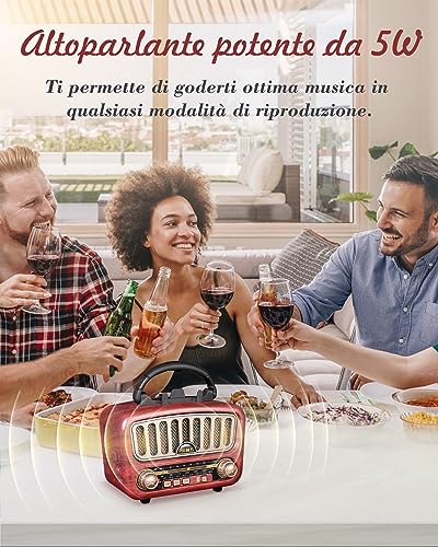 【Suono chiaro e forte】 Questo radio bluetooth vanta un potente diffusore, potrai godere di un suono forte e cristallino. Che tu sia a riposarti nella tua stanza o passeggi in giardino, potrai rilassarti con questa radio. Il bellissimo suono ricco ti avvolgerà come una comoda coperta, immergendoti nel meraviglioso mondo della musica e lasciando tutte le tue preoccupazioni alle spalle.