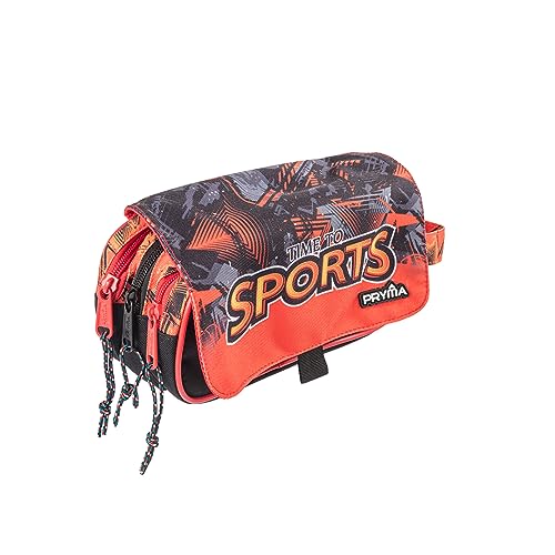 Pryma Astuccio Capiente 3 Scomparti, per Scuola Elementare e Media, 21 X 10.5 X 7 Cm, 3 Zip, Coperchio con Velcro con Etichetta Scrivibile Linea Sport (Sport Bimbo)