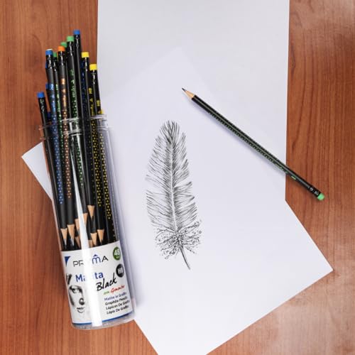 Pryma 48 Matite HB Grafite con Fusto in Legno Colorato, Confezione Tubo, Portatile e Conveniente, Da disegno con Gommino e Punta già Temperata, Matita Pronta all'uso, Fine Art, Multicolor (Black)